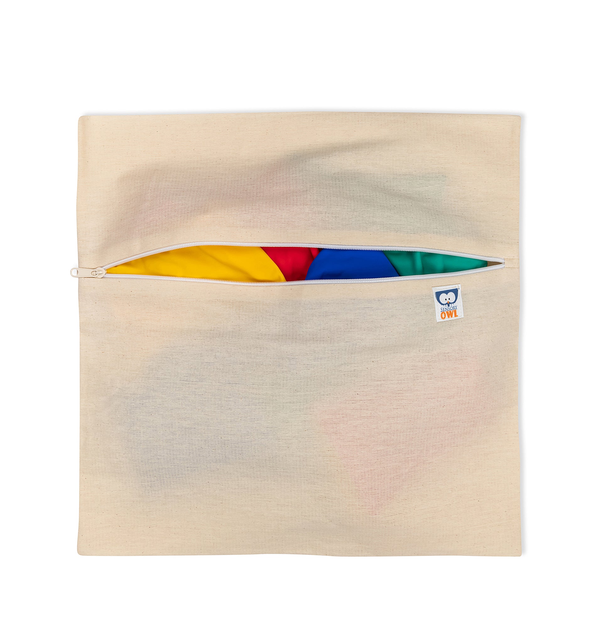 The pack comprises 12 bean bags made of recycled waste pieces of lycra.  We are committed to sustainable production, therefore, utilising every piece of fabric that is left unused. The bag is made of natural undyed cotton. Bean Bags are filled with natural gravel instead of plastic pellets. Natual gravel gives an extra tactile input and is great fun to play.